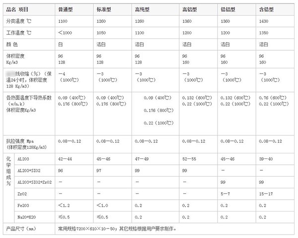 陶瓷纖維毯分類溫度: